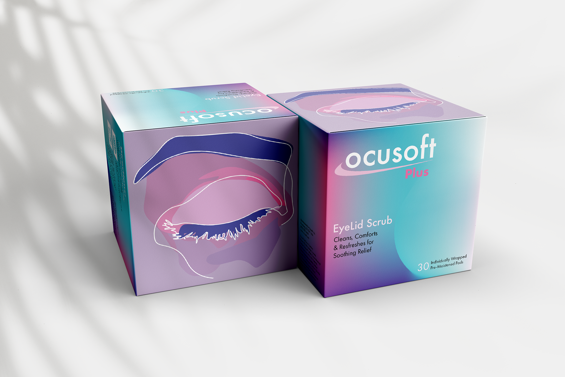 Rebranding a series of packaging design for an existing brand "Ocusoft", an eye lid health company.